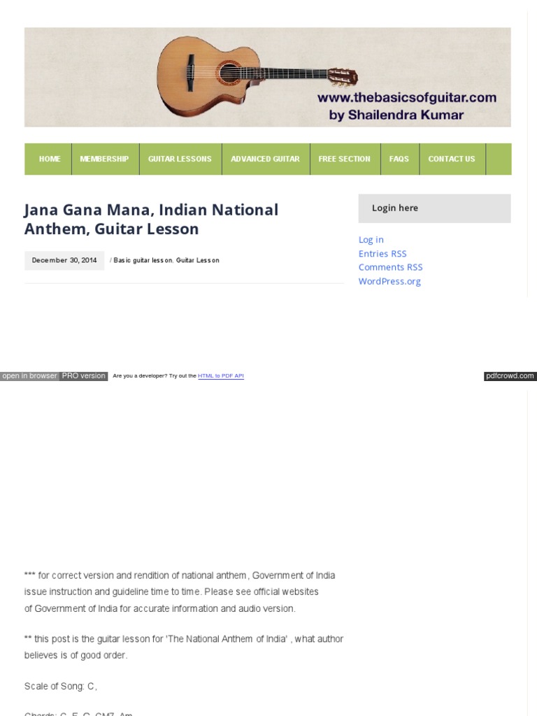 Jana Gana Mana Guitar Tabs Pdf Download Rdvk Rimist Site - National anthem jana gana mana guitar tab sheet bollywood tab sheet.